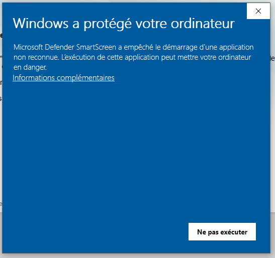 Pour passer cet avertissement, il vous faut cliquer sur les 3 petits points (…) en haut et à droite de cette fenêtre d’avertissement…